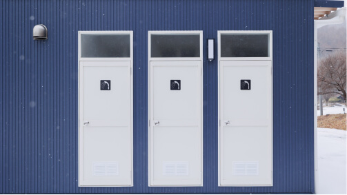 キャンプ場施設内の管理事務所やトイレ棟、シャワールームも弊社のユニットハウスならまとめて施工が可能です。