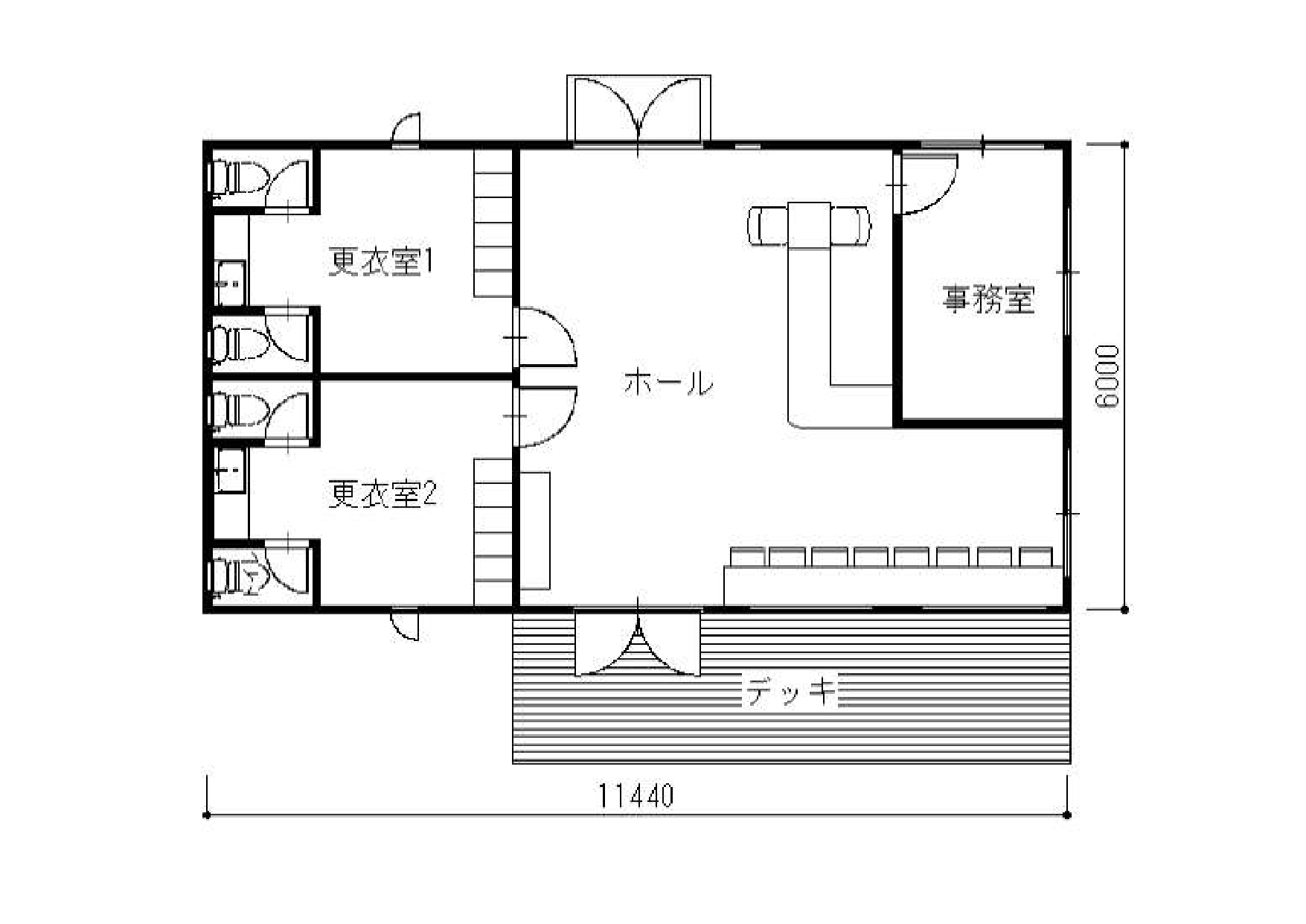 事務室の他、トイレとロッカー付の更衣室を2部屋設けました。