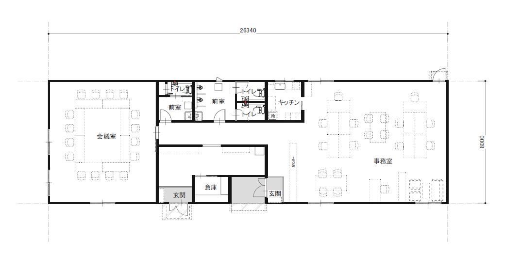 約64坪の大型オフィスもユニットハウスなら移設可能。