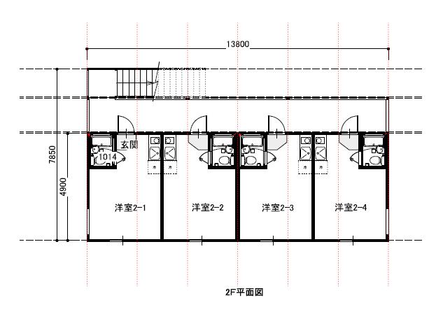 一体型ユニットバスとキッチンを備えた全8室の社員寮のプランです。